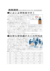 令和7年度進路通信vol.10が発行されました。主な内容は以下のとおりです。 ■いよいよ学年末です! ■大学入学共通テストの平均点 ■3年生の合格体験記 ■第102回箱根駅伝